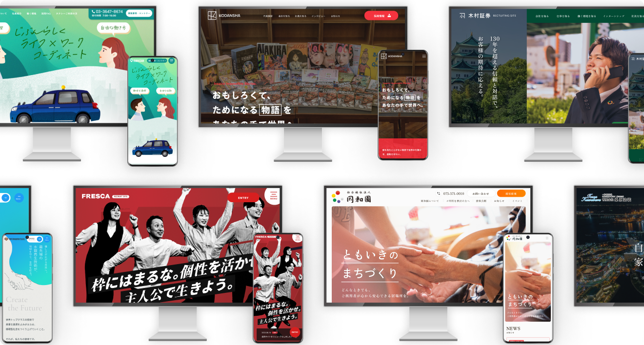 媒体への掲載、採用サイトの制作、採用フロー設計など、採用に関するあらゆる商材を網羅。各企業に適した課題解決の提案をさせていただきます。
