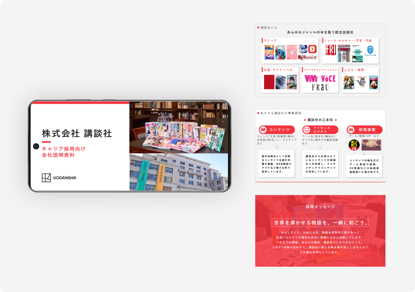 制作数600社以上!採用のプロが作成する採用特化型会社説明資料。活用シーンに応じた様々な採用ピッチ資料を制作いたします。